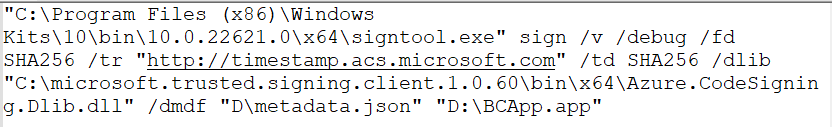After downloading the necessary packages, we proceed with the installation. Next, we use the installed SignTool to code sign the app. This involves creating a JSON file and then using SignTool to sign the file.