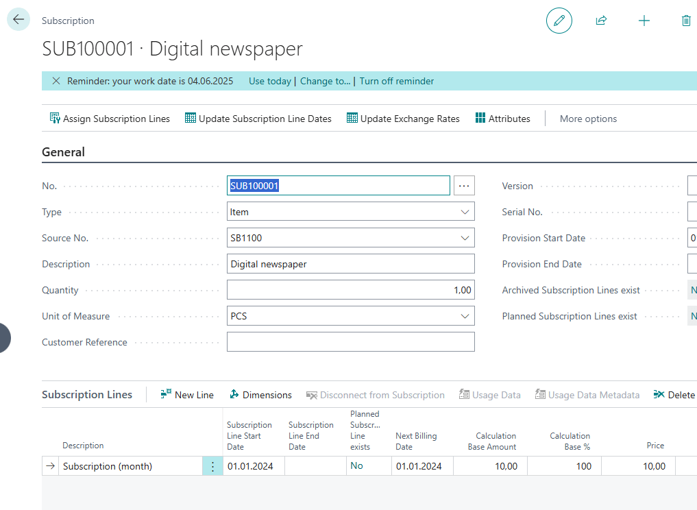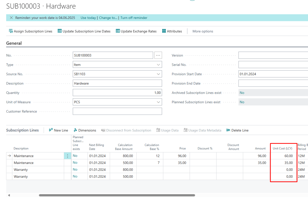 Previously, in BC25, Subscription Lines only displayed price or total amount, regardless of whether they were bound to a Vendor or Customer.