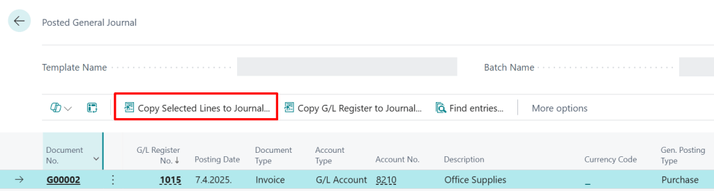 - Select the lines and choose Copy Selected Lines to General Journal.